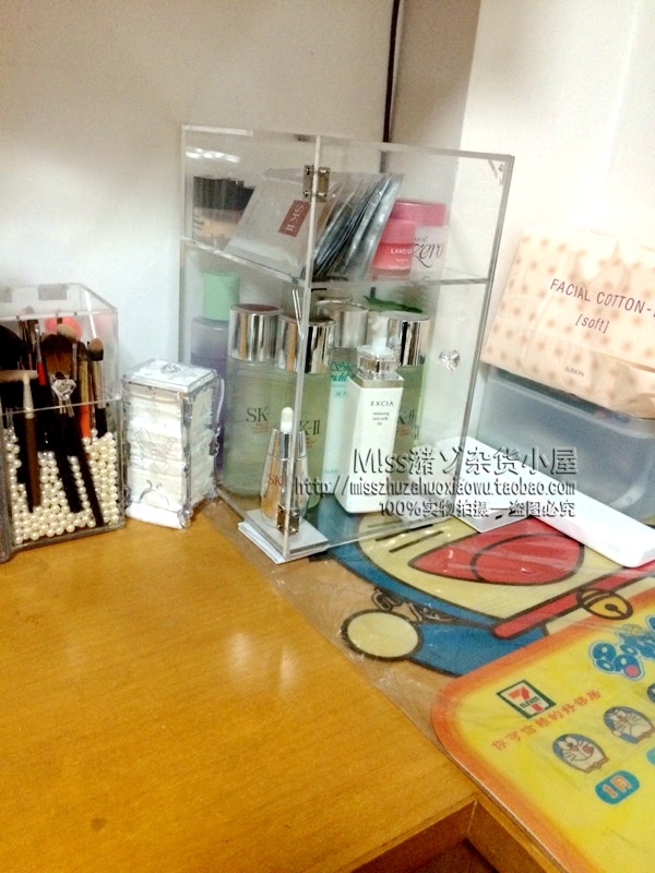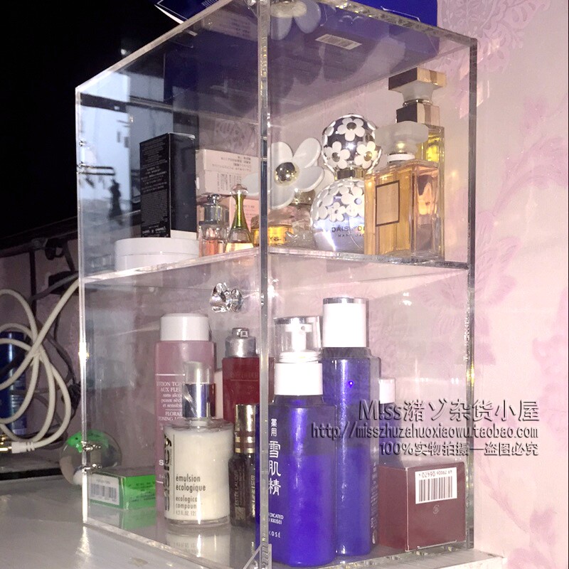 Desktop transparent two-layer large open door dust-proof skin care products water lotion makeup storage finishing box cabinet