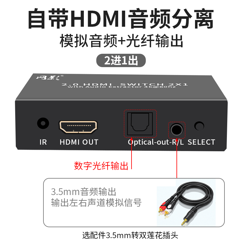 Mesh 4K HDMI2.0 Ultra HD Computer Set-Top Box Projector Video Switcher 2 in 1 out with audio
