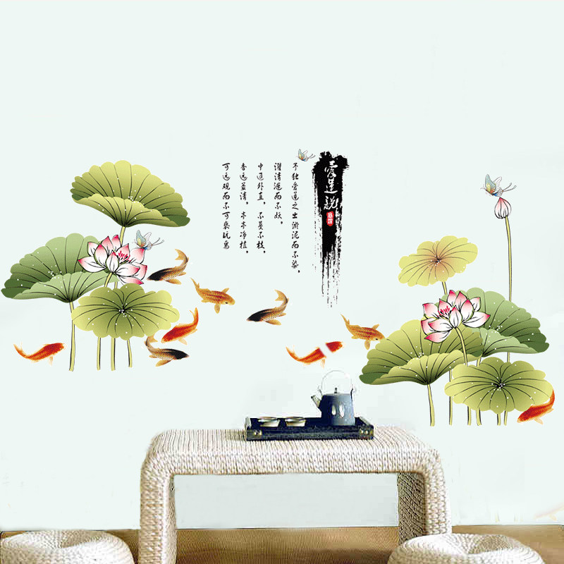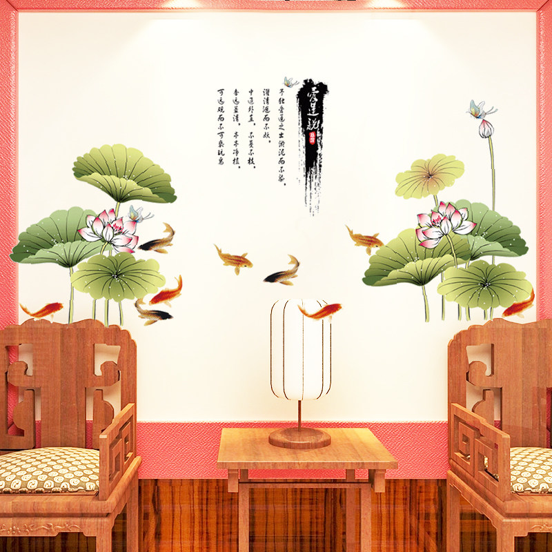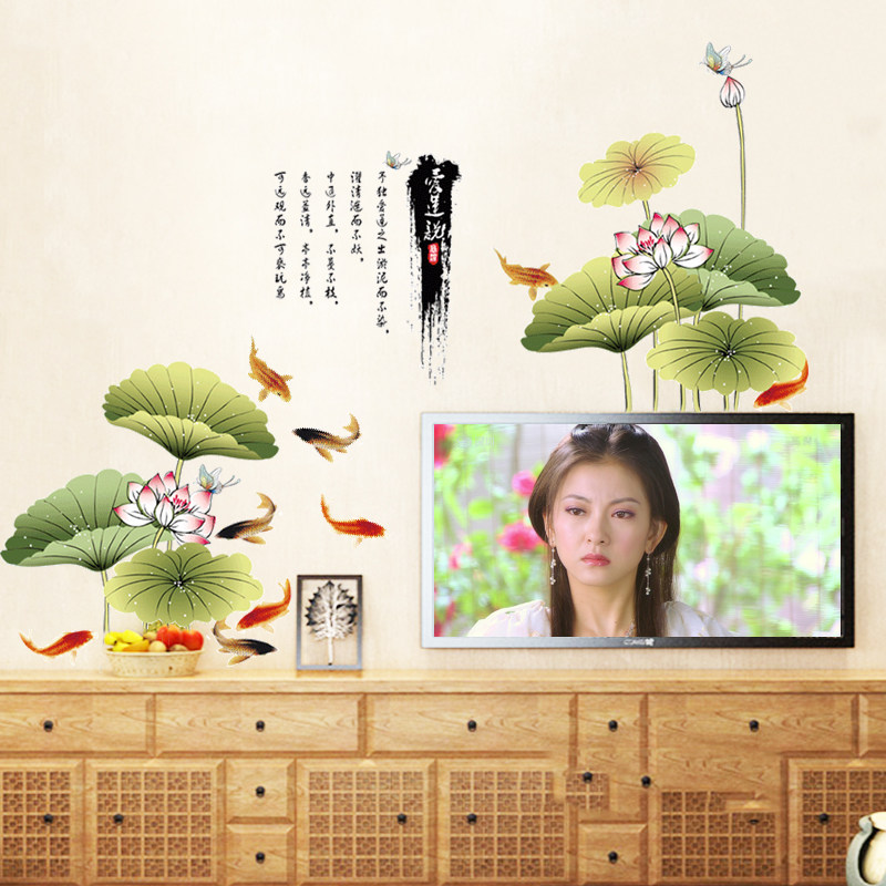 Brief Chinese living room sofa TV background wall applid wall decoration sticker self-adhesive creative lotus wall stickers