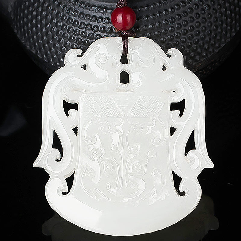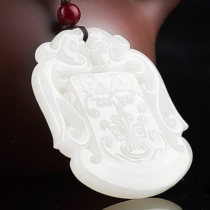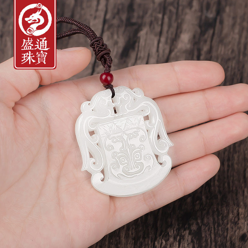 Shengtong Jewelry Natural and Tian Baiyu Pendant Pendant male and female Ancient Beast Face Axe Shaped Double Dragon Card Jade Pendant Jade Pendant Jade Pendant