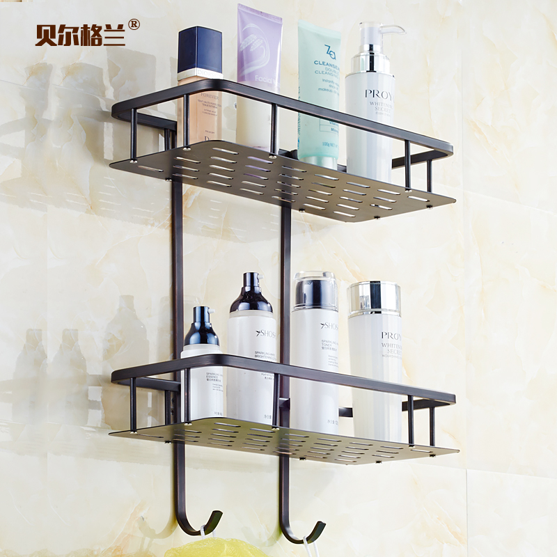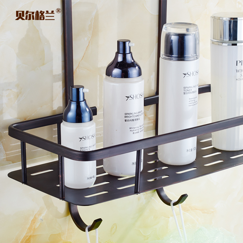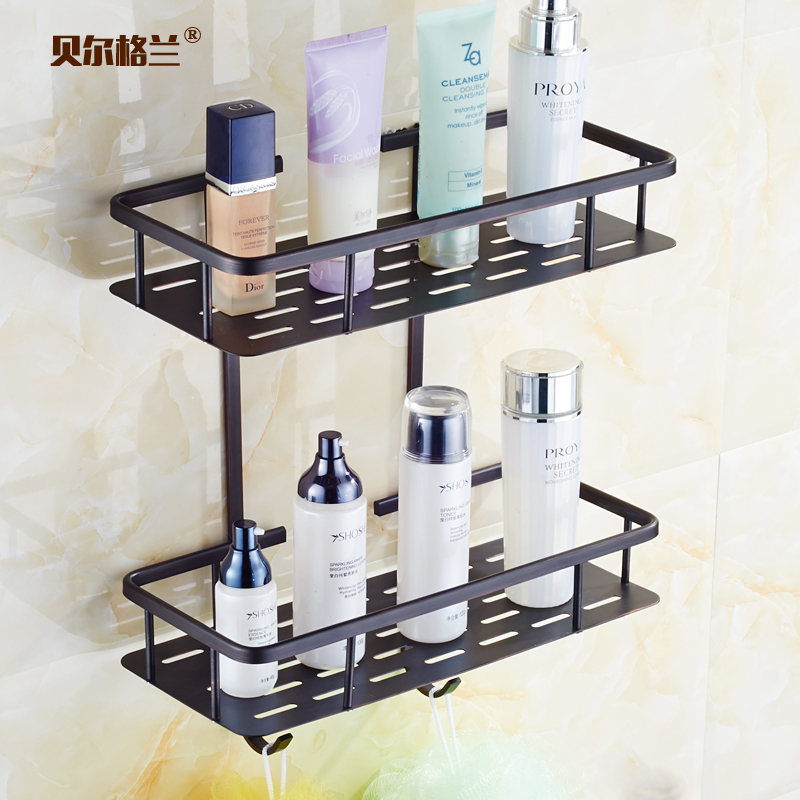 Black Ancient Brass Eurostyle Antique Bathroom Shelve with Mediterranean Bathroom Pendant Full Copper Makeup room Contained Net Basket