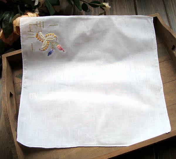 Foreign trade Export Chaoshan Handmade embroidery Supplementary Flower Drawing Yarn Retro Pure Cotton Handkerchief Pafia Handkerchief Gift Hand Letter 28CM