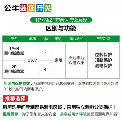 Bull flagship leakage protector 2P miniature circuit breaker Air household air open switch 25A32A63A