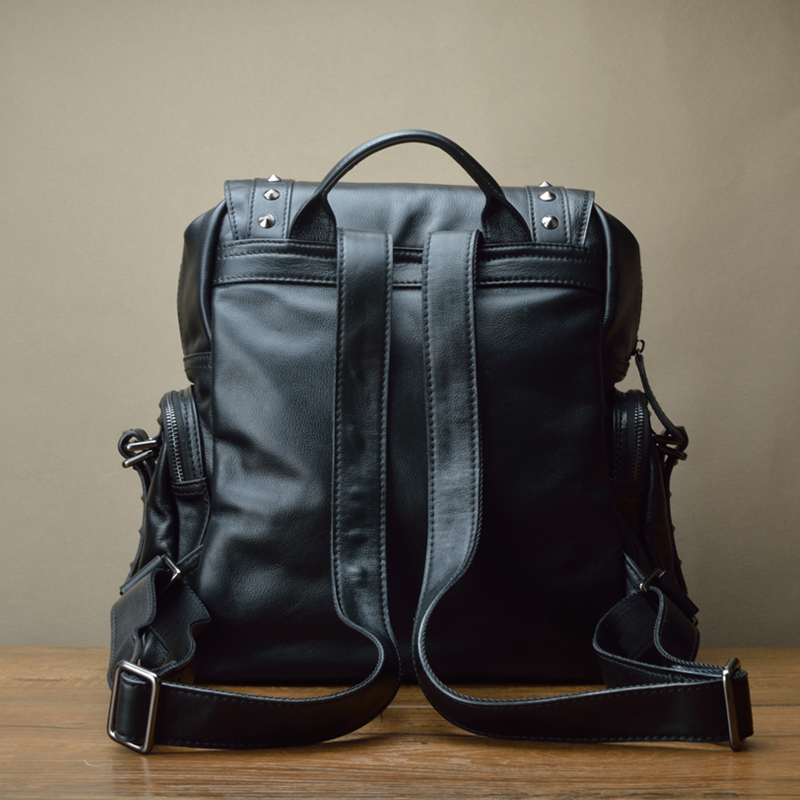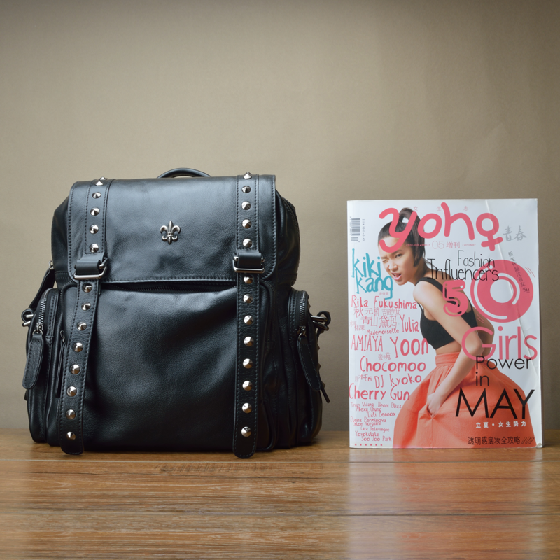 Phyema new high-end imported leather men's and women's bags head layer cowhide bag tide rivets bag genuine leather school bag