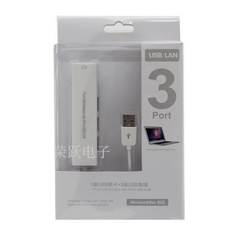 USB transfer network card computer external usb2 0 turn rj45 Ethernet 100M network card 3-port HUB splitter