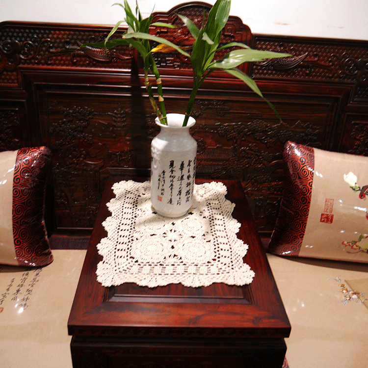 I love my home pure hand crochet hook Flower Cotton Lace Cotton Lace Hollowed-out Field Dining Mat Decoration Cushion Rectangle