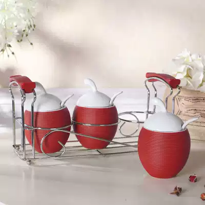 Creative ceramic seasoning jar European style with lid Bone china seasoning jar box bottle three-piece set