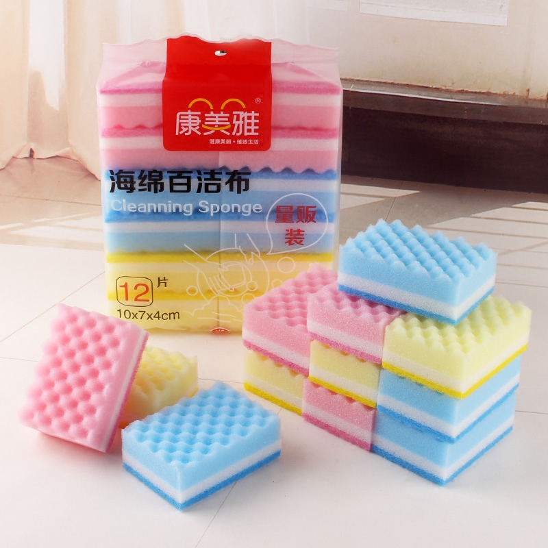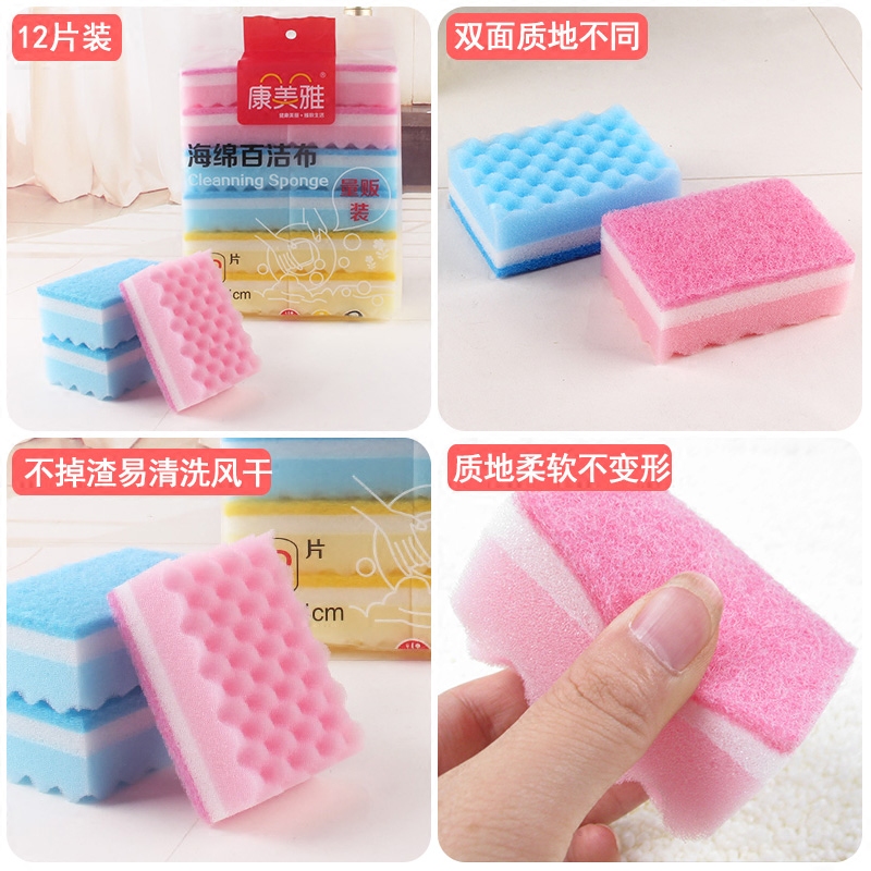 Dishwashing sponge block magic wipe 12 pieces of kitchen dishwashing cloth Washing pot double-sided corrugated scouring cloth brush bowl cloth decontamination