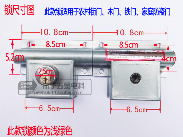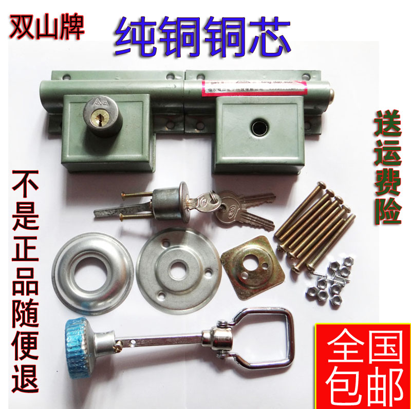 Double-mountain rack lock double door lock large door lock wood door lock wearing strip lock copper core two-piece security door lock