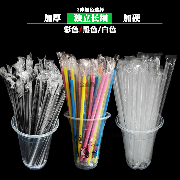 Disposable coffee juice single long thin black color transparent independent packaging milk tea cup straw drink 1000