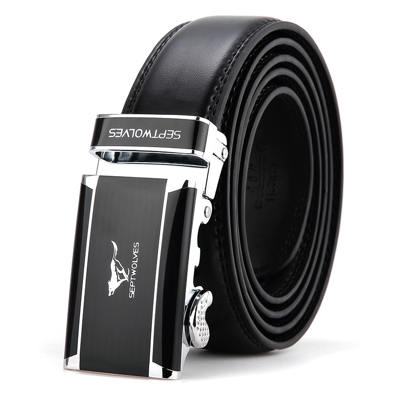 Seven Wolves Leather Belt Men Genuine Leather Automatic Buckle Brand Special Cabinet Cow Leather Belt young men's small pure earth