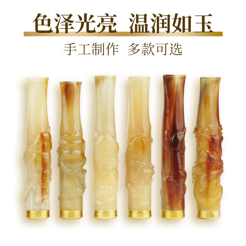 Send boyfriend engraving raw Shore horn cigarette holder filter circulating type washable pull-lever filter tobacco