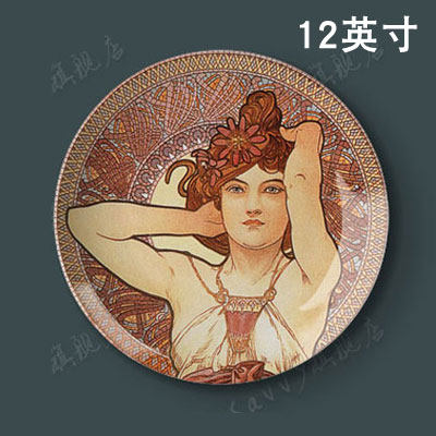 12-inch Mucha painting collection works decorative plate hanging plate swing plate ceramic plate decorative painting plate wall photo plate