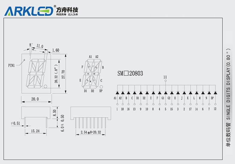ARK Ark SM820803G pure green digital display 0 8-inch one-digit highlight co-yin meter word digital tube