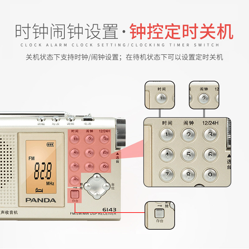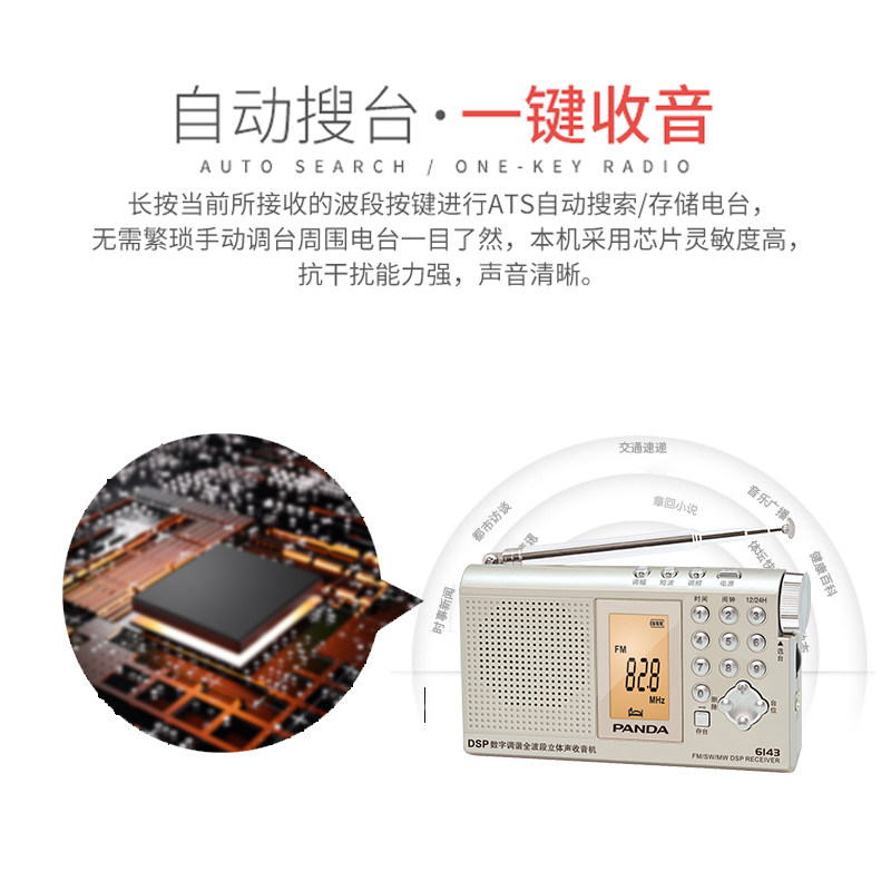 Panda 6143 Radio Seniors Stereo Full Band Portable Semiconductor FM Fm Seniors Digital Small Broadcast Small Mini Retro Old Nostalgia VOA