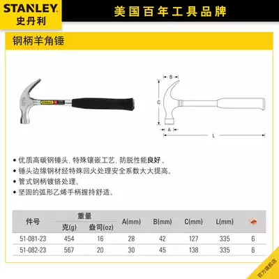 Stanley anti-detachment steel handle claw hammer home decoration one-piece hammer multifunctional safety hammer hammer hammer nail hammer