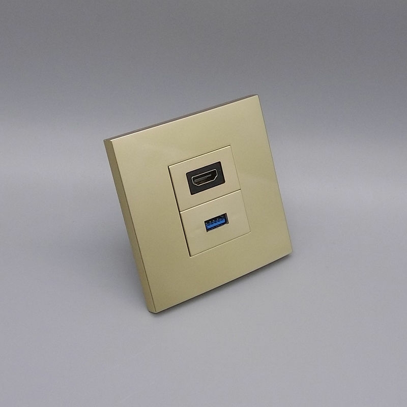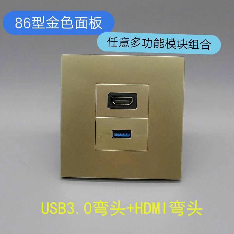 Golden HDMI high-definition elbow 3 0 version USB elbow panel data line extends digital TV wall plug 86 type