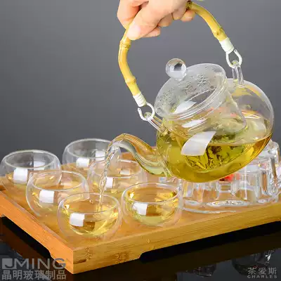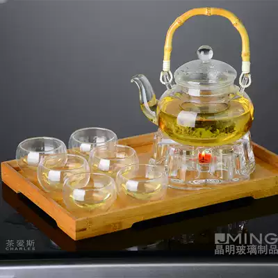 Glass pot 6 double-layer cup crystal base(send wax)Glass pot 6 Double-layer cup Glass pot 6 double-layer cup crystal base Bamboo plate Bamboo beam Glass pot x1