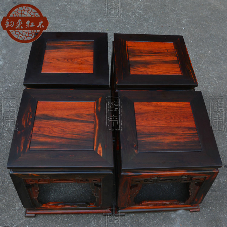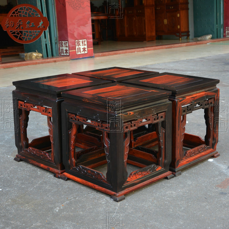 Laos red rosewood square dining table and chairs leisure table five-piece set Cotoe rosewood black material with red material antique