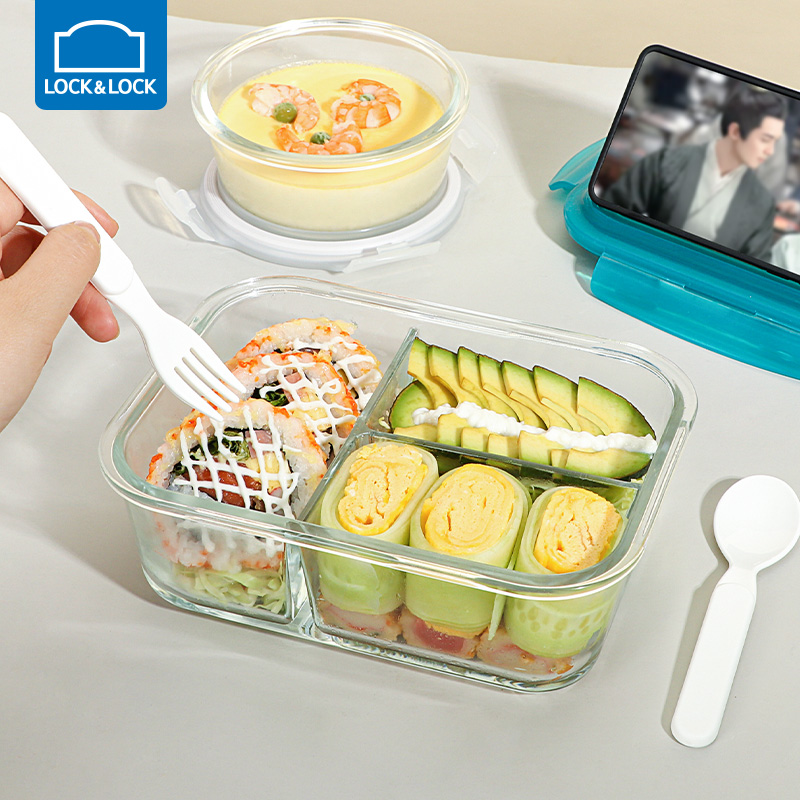 Music Buckle Legbuckle Refreshing box glass lunch box Microwave Lunch Box Glass Bowl glass Bowl Fridge Containing box Home Seal box