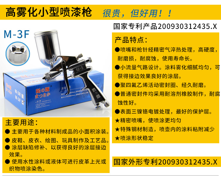 Japan Matsusaka Small Spray Gun Leather Leather Leather Leather Leather Leather Shoes Toy Pneumatic Repair Small Paint Spray Gun Spray Gun M-3F