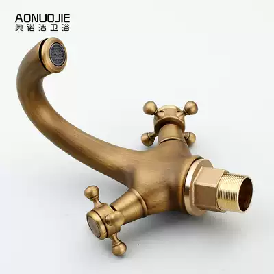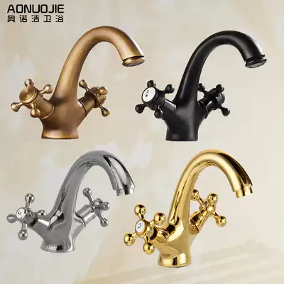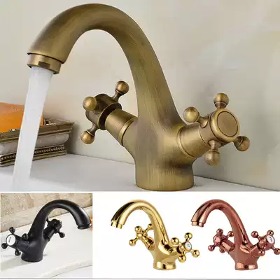 All copper European antique faucet retro single hole double basin faucet wash basin faucet hot and cold