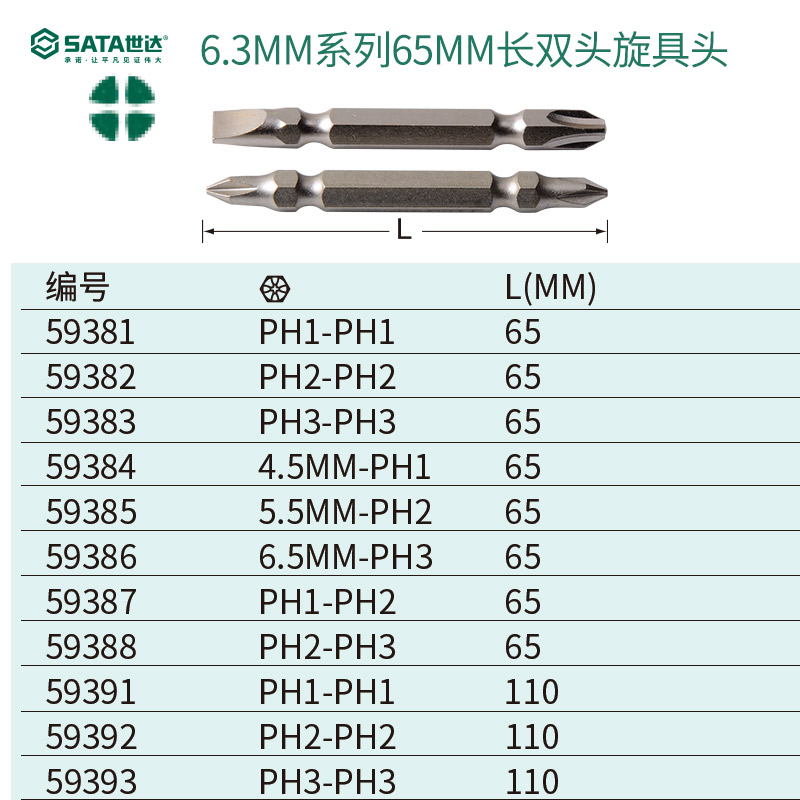 59385 (5 5mm-PH2 65) 59393 (PH3-PH3 110) 59386 (6 5mm-PH3 65) 5