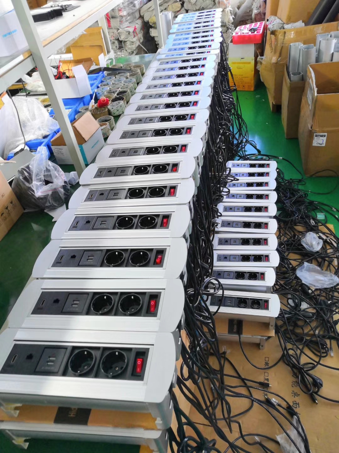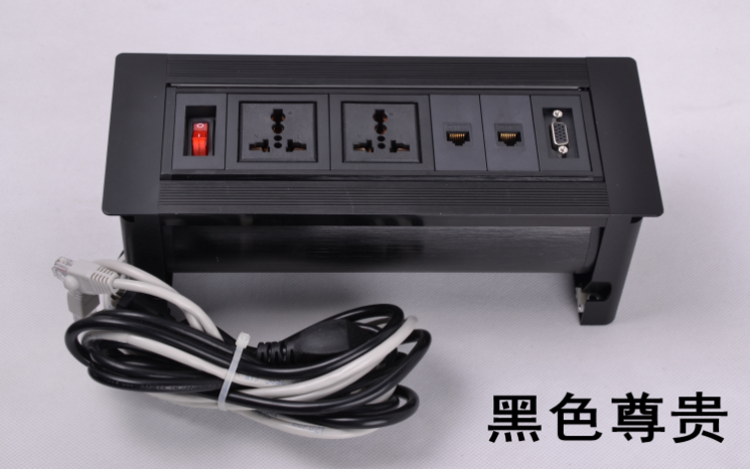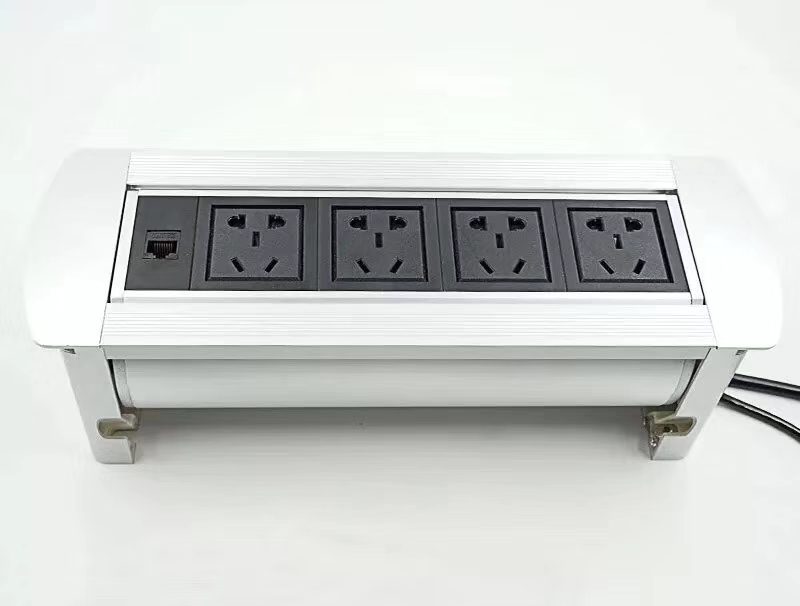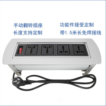 Manual flip desktop socket multimedia table rotating information power interface wire management box integrated module with cable