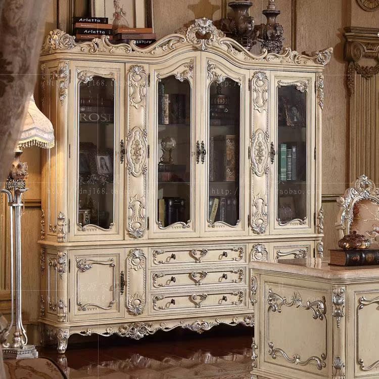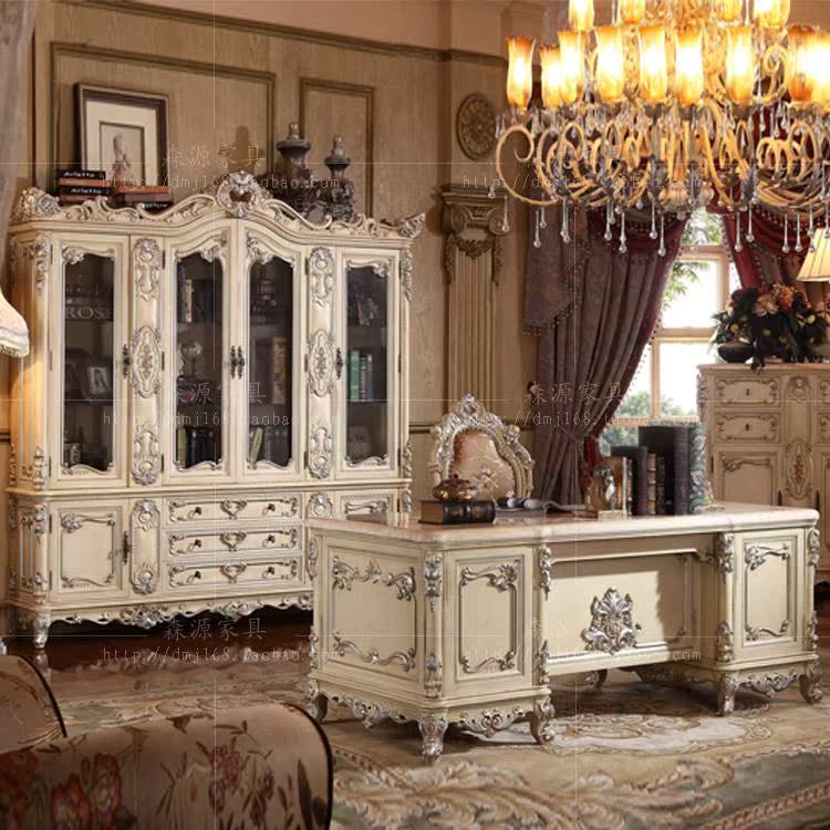 European and American style luxurious marble surface desk solid wood carved computer desk boss desk carved desk