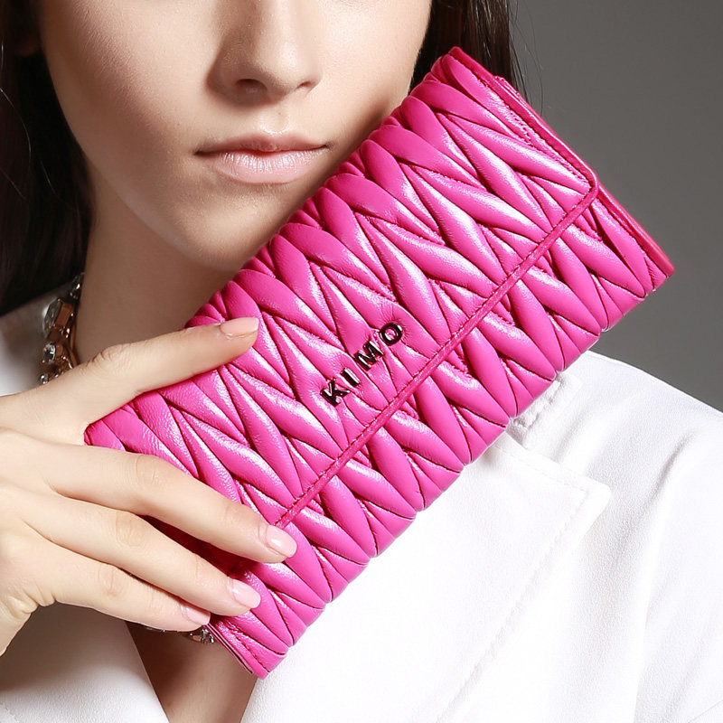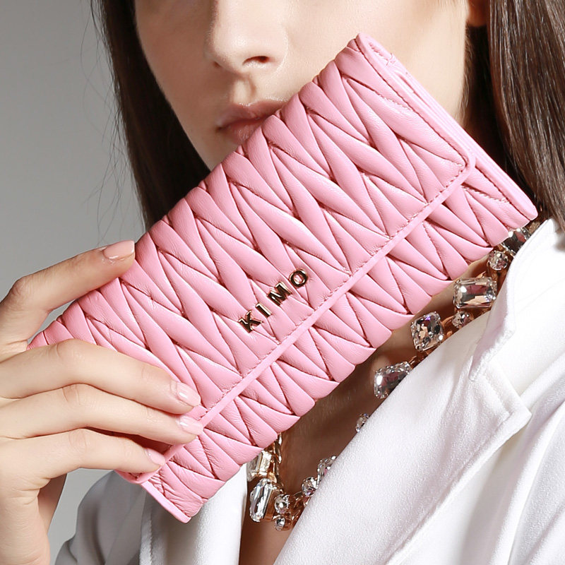 KIMO new women's wallet women's long version of the big money clip European and American simple big money clip Sheepskin women's wallet wallet