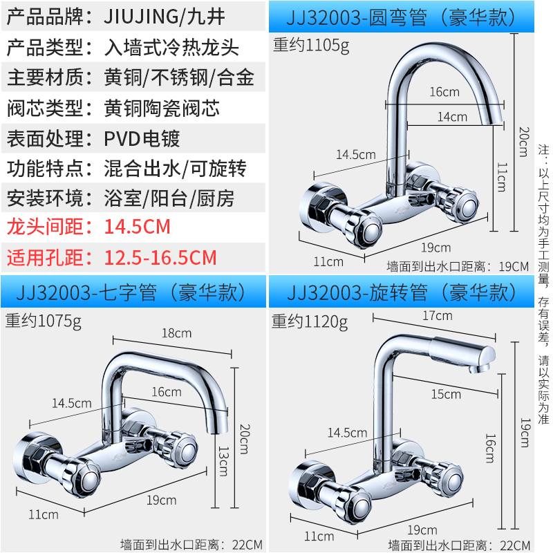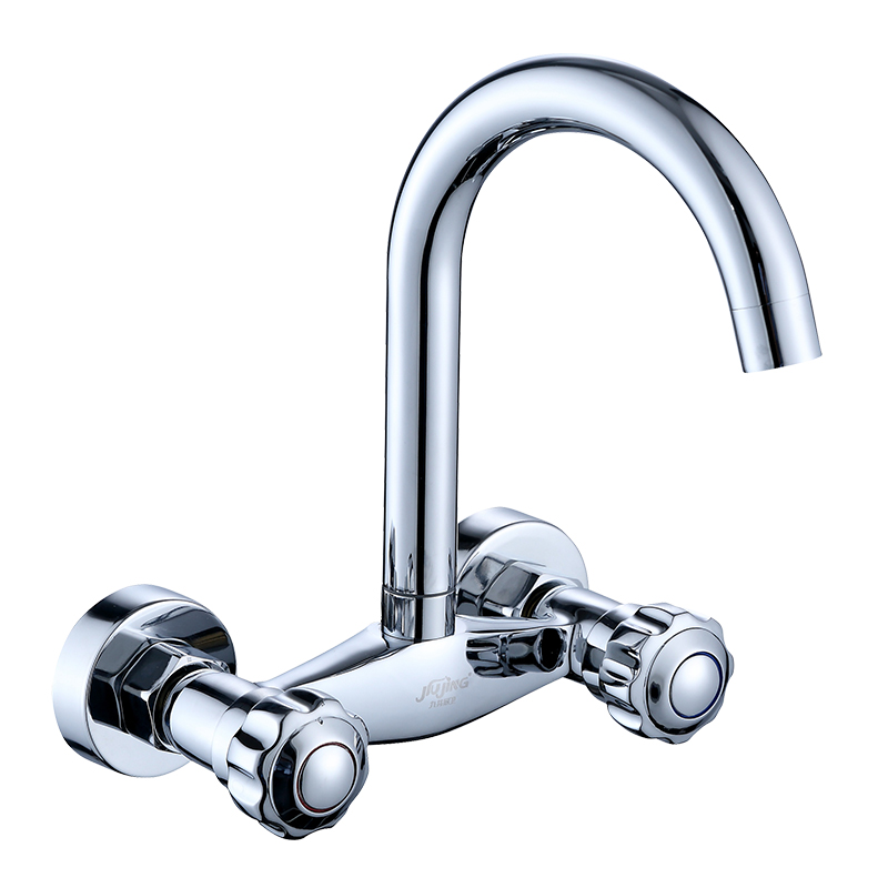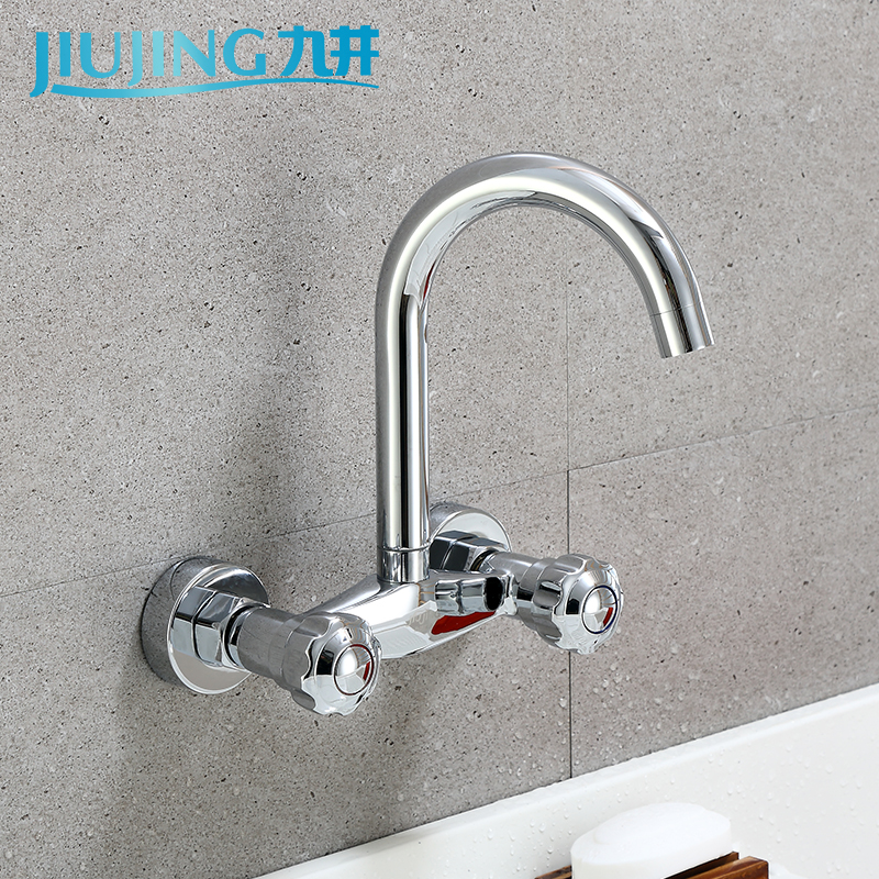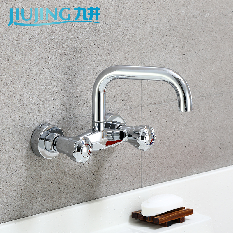 Wall-in-wall kitchen tap Balcony Cage Head Hot And Cold Full Copper Double Handle Double Holes Wash Basin Sink Tap