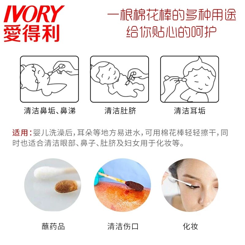 Edelli baby cotton sign fine paper shaft cotton stick baby special ear nose clean double head sterile cotton stick 400 root-Taobao