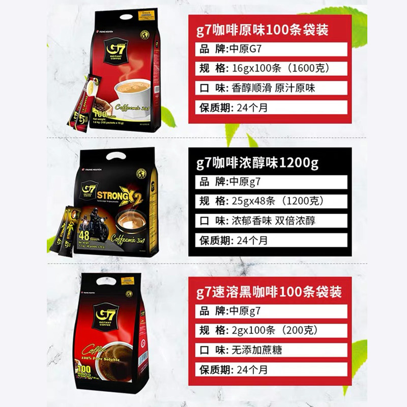 Central Plains g7 coffee imported from Vietnam original flavor three-in-one instant white coffee powder students refreshing 100 packs