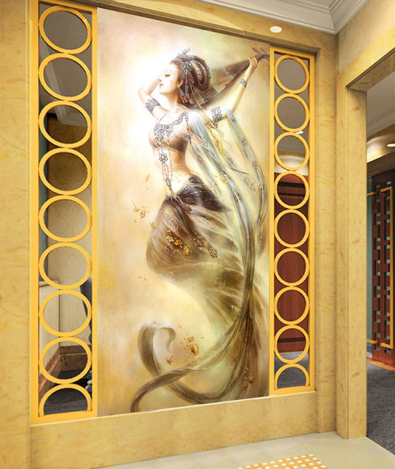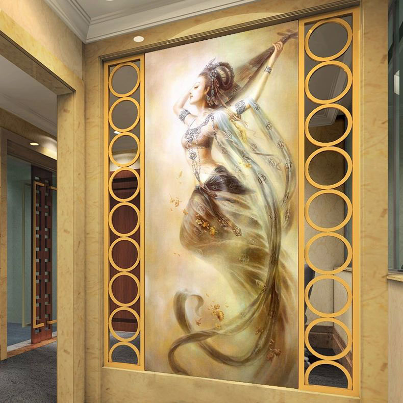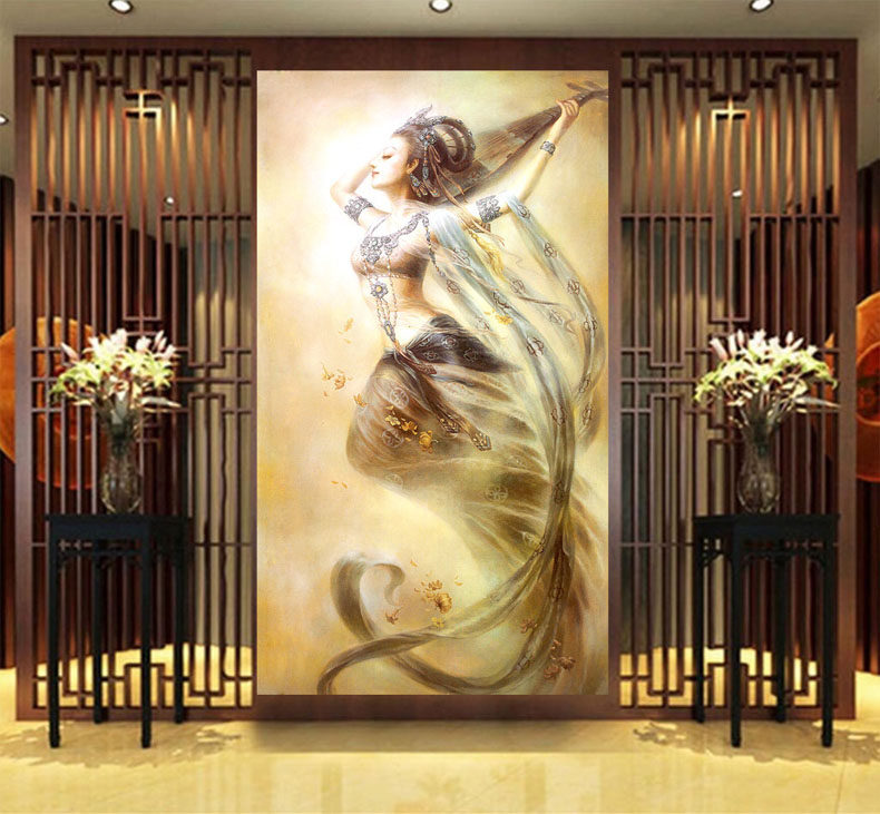 Mona Lisa Cross embroidered 2021 new line embroidered living room vertical version Xuanguan Dunhuang Flying Sky Rebound pipa herself embroidered