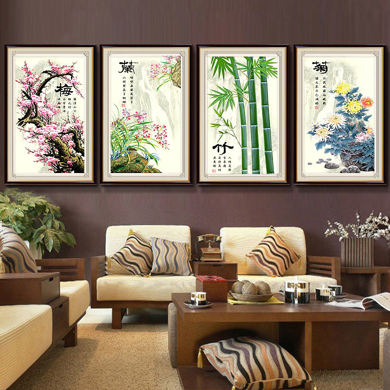 Printing cross-stitch new living room bedroom four gentleman elegant version Meilan bamboo chrysanthemum four screen vertical version four paintings large