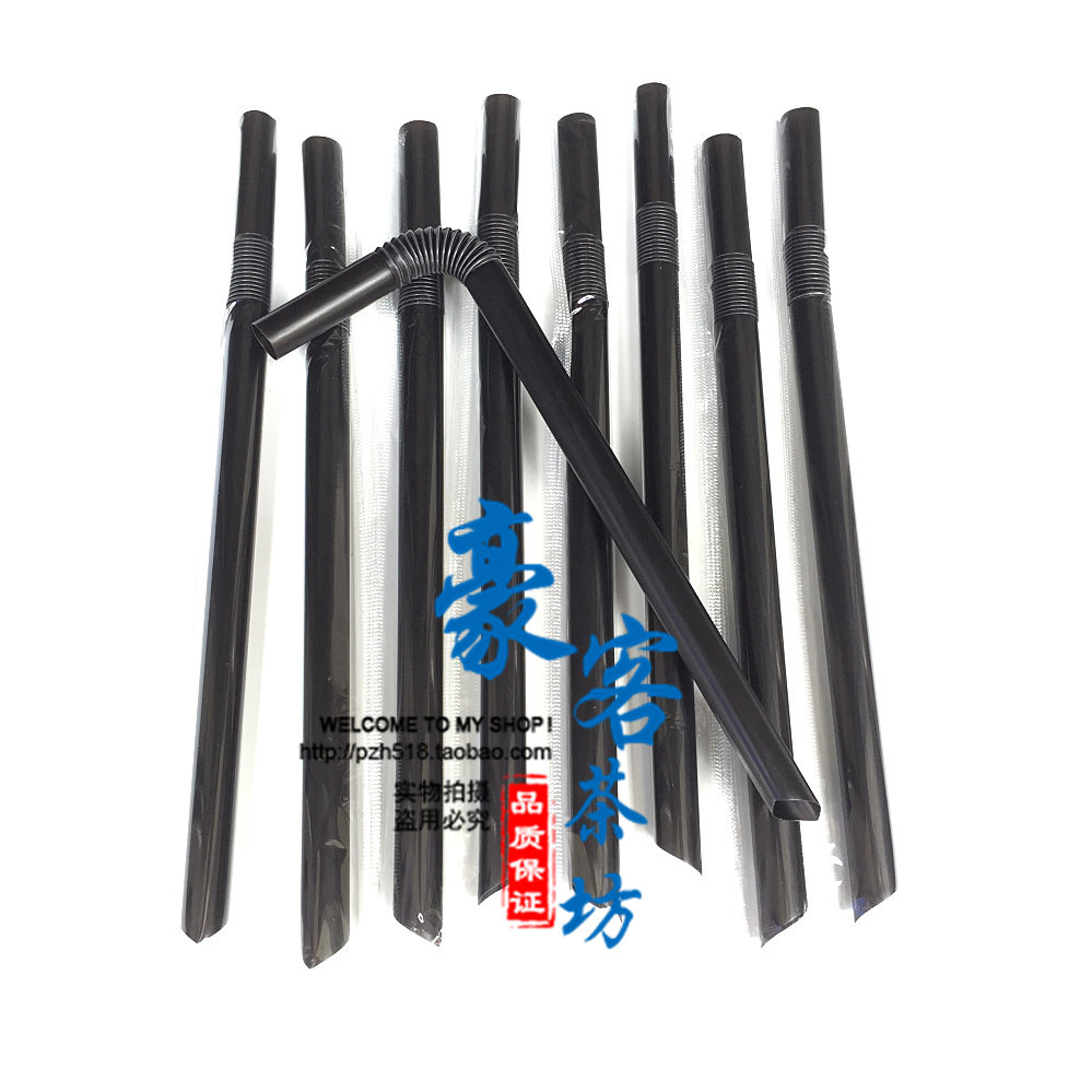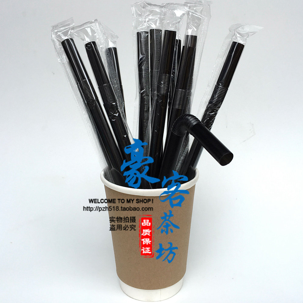 Disposable bubble tea coarse straw can be bent head big straw long juice straw black independent packaging