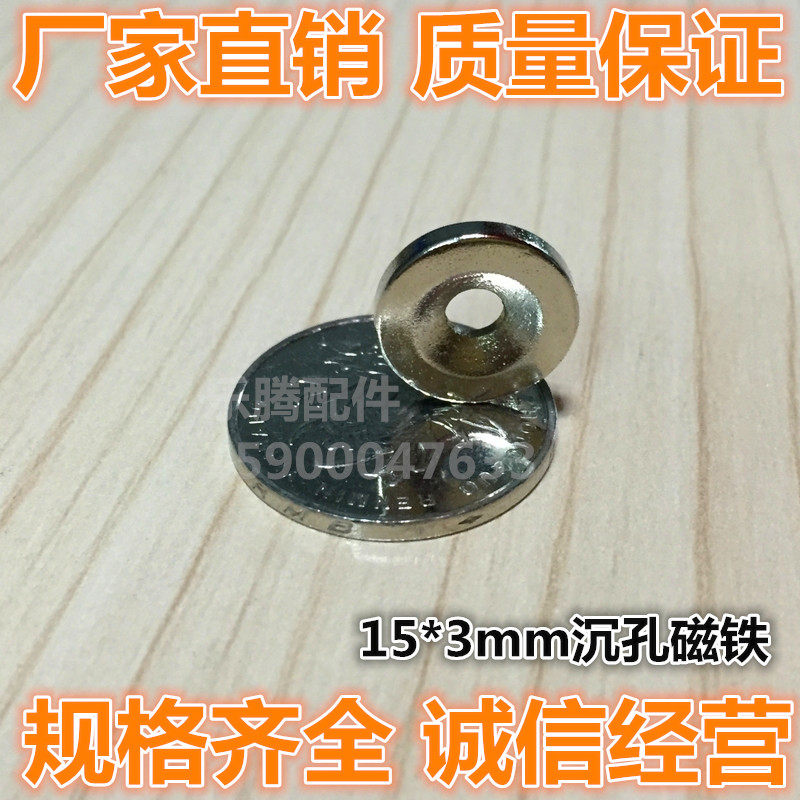 Powerful magnet strong magnetic round magnet diameter 15 thickness 3 sinkhole rare earth powerful magnet neodymium iron boron magnetic