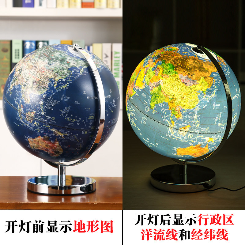 Tianyu 32cm Taiwan bump 3d three-dimensional embossed large intelligent globe genuine students with junior high school students high-end ornaments with lights glowing living room ar table lamp handicraft suspension children enlightenment