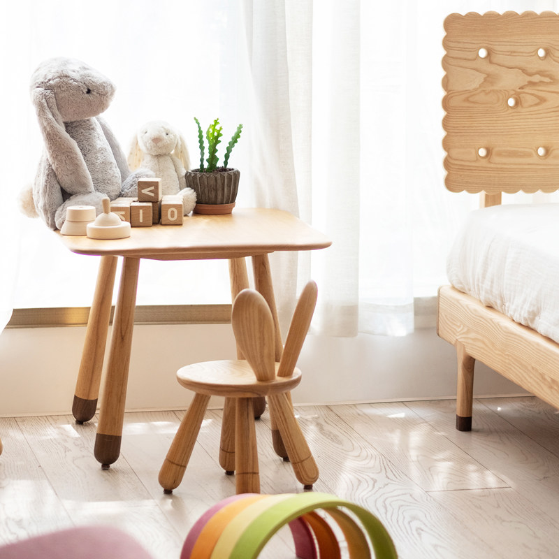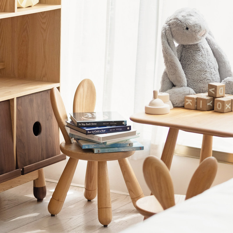 On the shape of the child in the small rabbit stool children's back chair solid wood chair makeup dining stool children's painting environmental protection furniture