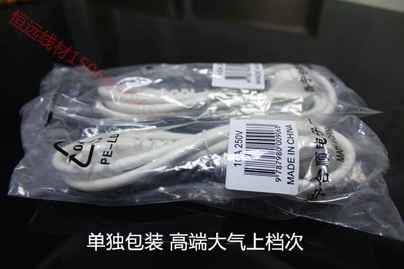 National standard white power cord 3*0 75 square 1 8 meters computer power cord three-core plug connection line three holes