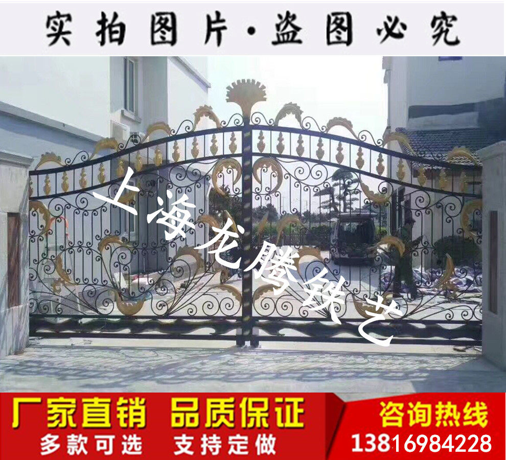 Shanghai Wrought iron gate Courtyard door Villa gate Wrought iron double door Electric moving door Community gate Iron gate