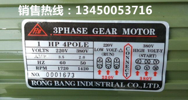 RB Rongbang gear reduction motor speed motor 1HP 0 75KW380VGH horizontal GV vertical spot is complete