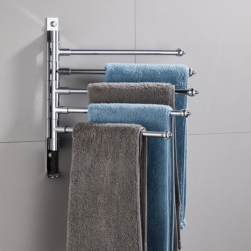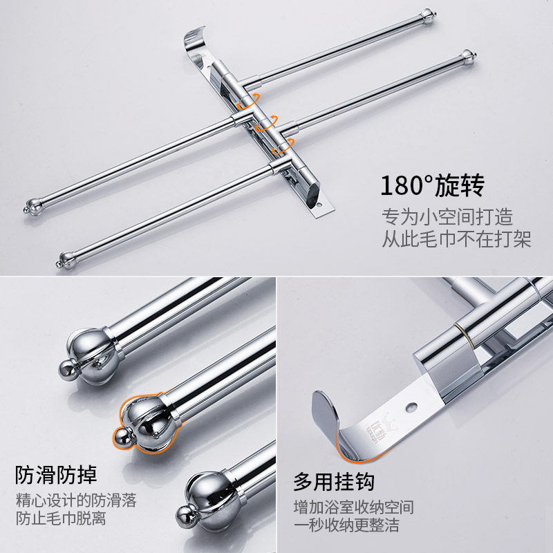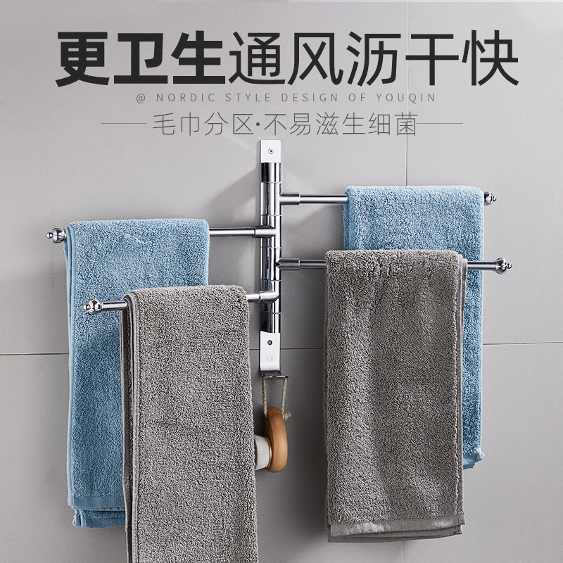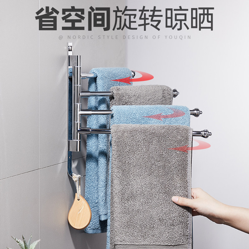 Non-perforated rotating towel rack stainless steel powder room shelf Bathroom towel rack multi-pole toilet wall hanging shelf
