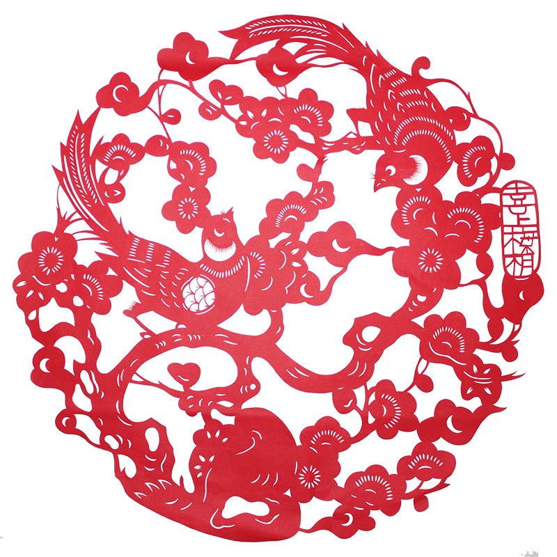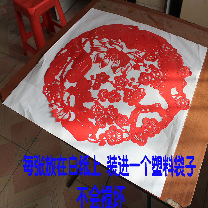 Magpie Den Plum and gas pure hand cut paper Living room Jiagu decoration painting Large Finished Hollowed-out Paper Carved Window Flowers