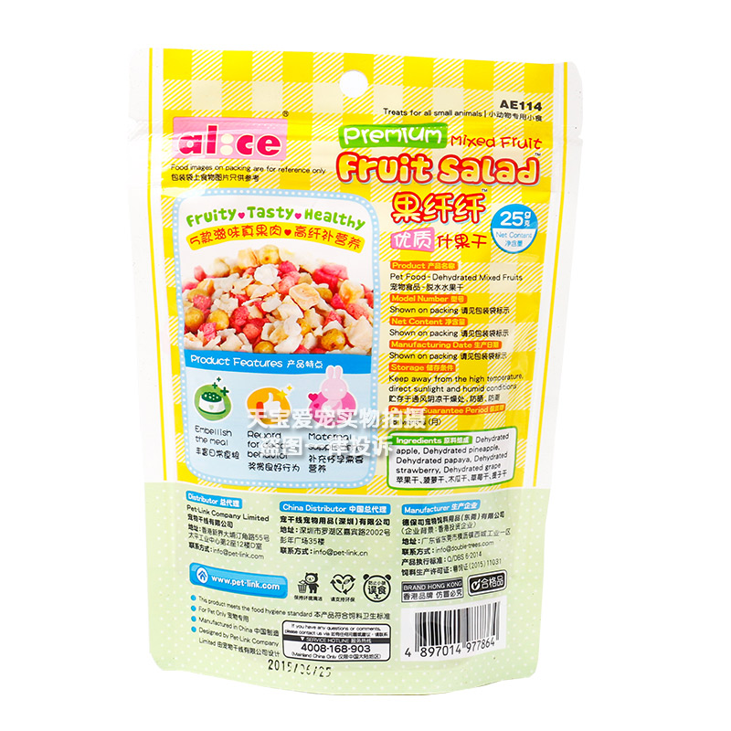 Alice fiber high quality Shiku dry animal snack 25g snack fruit dry