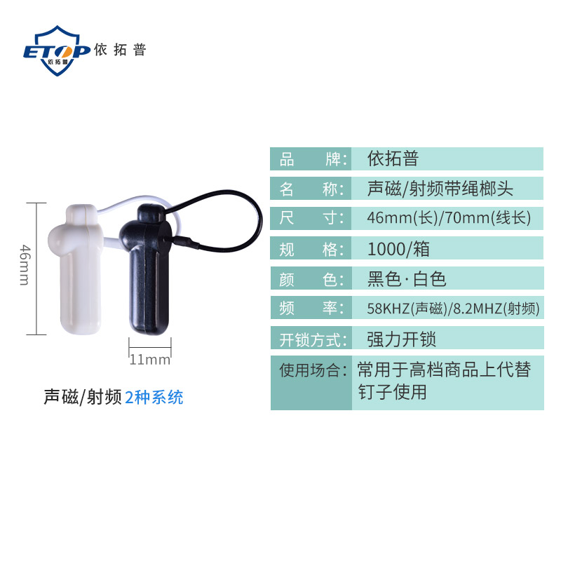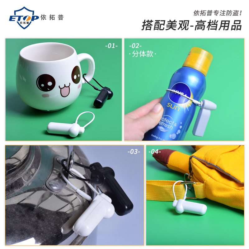 With rope anti-theft magnetic buckle sound magnetic small hammer door chain buckle supermarket burglar-proof hard label shoes bag with rope magnetic buckle