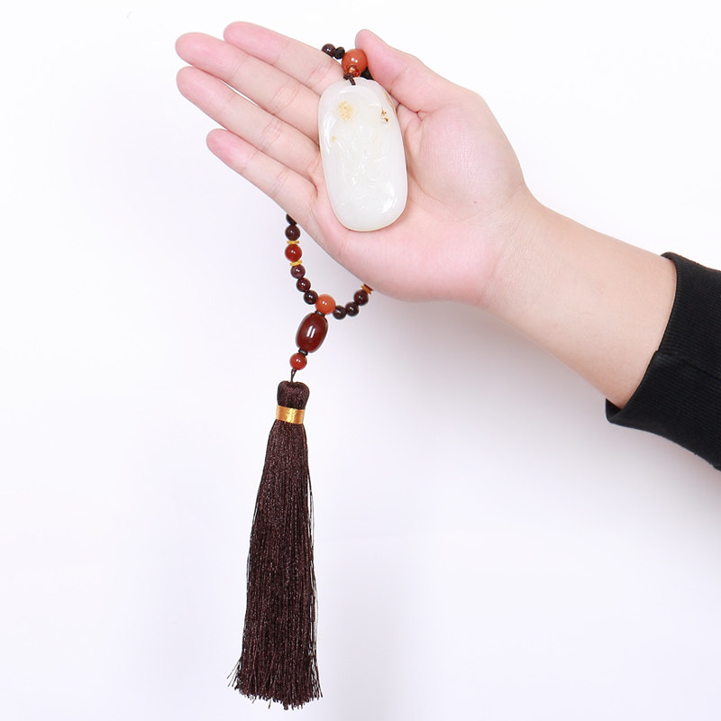 Shengtong jewelry natural jade handle piece jade sugar suet white Hetian jade Zhongkui pendant men and women pendant with certificate