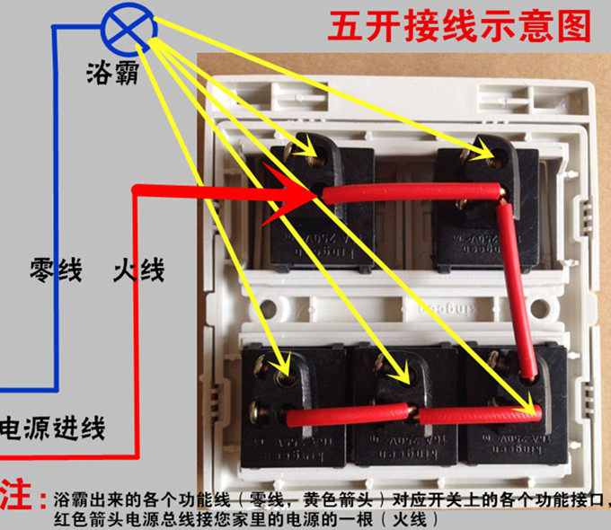 Bath overswitch 5 open 16A Five-in-one universal bath bully special switch Five-link transparent with lid
