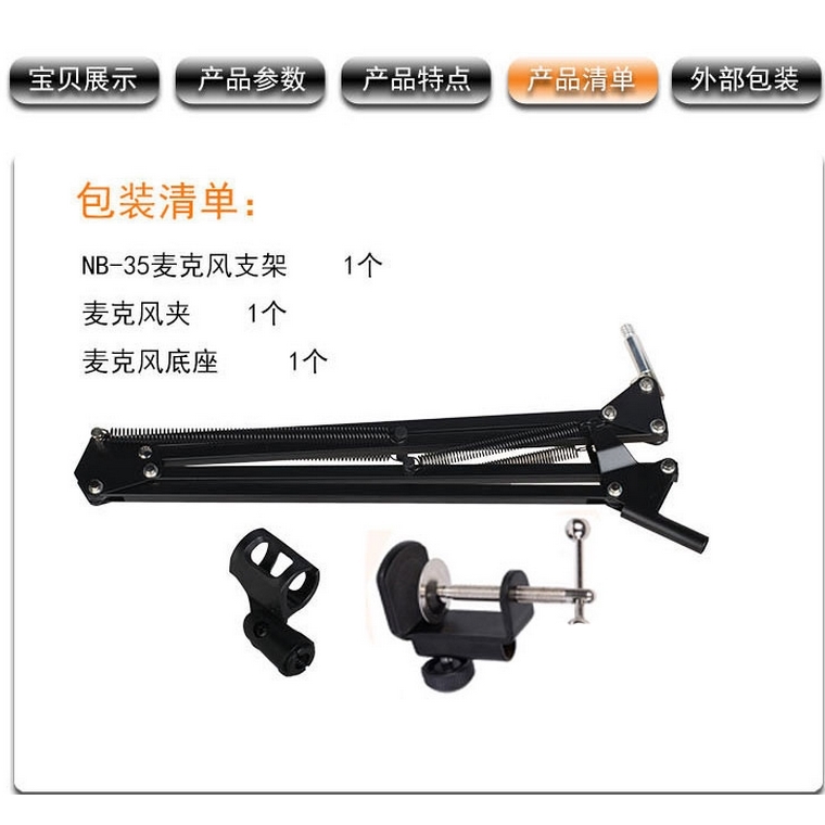 Professional microphone holder nb35 universal cantilever holder 360-degree capacitive microphone microphone floor holder Pabby degree