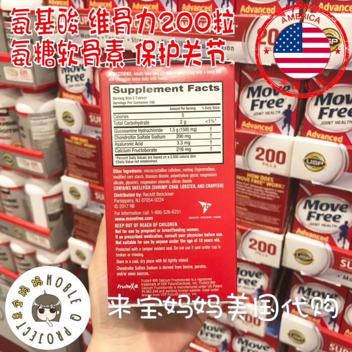 200 grains of glucomoline dixygen cartilin in the United States of Schiff Move Free amino acid